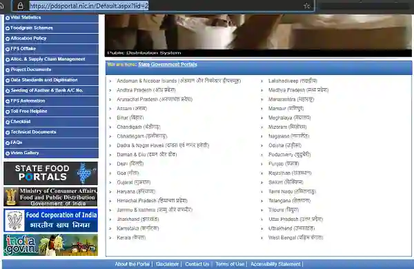 स्टेप 1. राशन कार्ड लिस्ट वेबसाइट को खोलें
